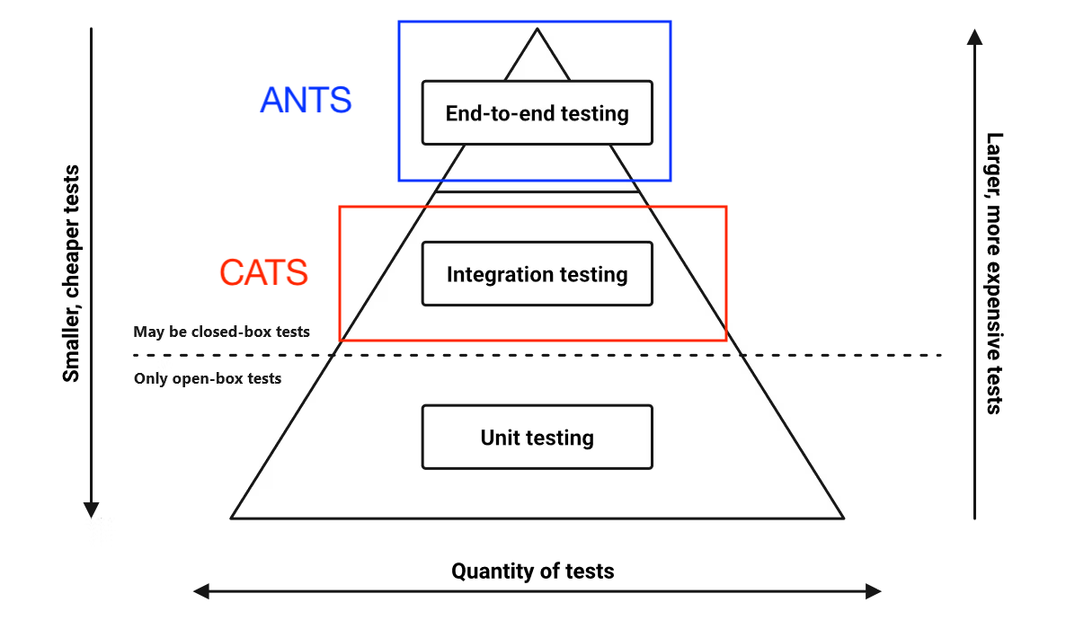 With CATS having addressed the need for single-radio integration tests, the next logical step was to move up the testing pyramid and implement a system for performing automated end-to-end testing of inter-radio communication.